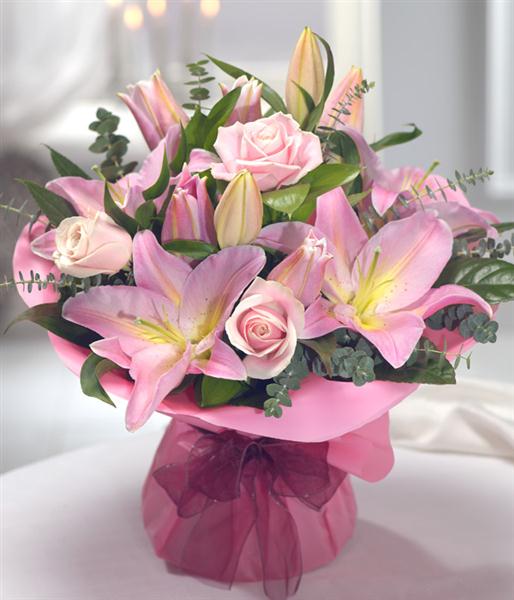Simply beautiful pink Roses and Lilies exquisitely arranged and perfectly presented. A treat delivered to someone special, a truly gorgeous bouquet.