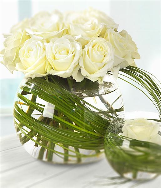 A really lovely gift for mother and baby. Beautiful cream Roses in a glass vase connected to a mini glass vase containing a single Rose.